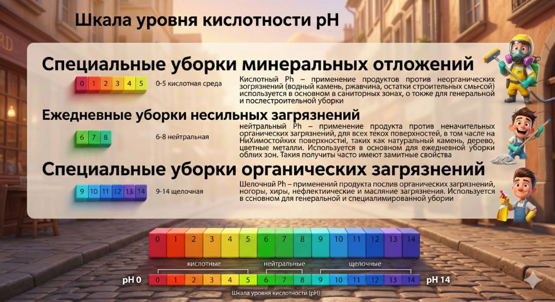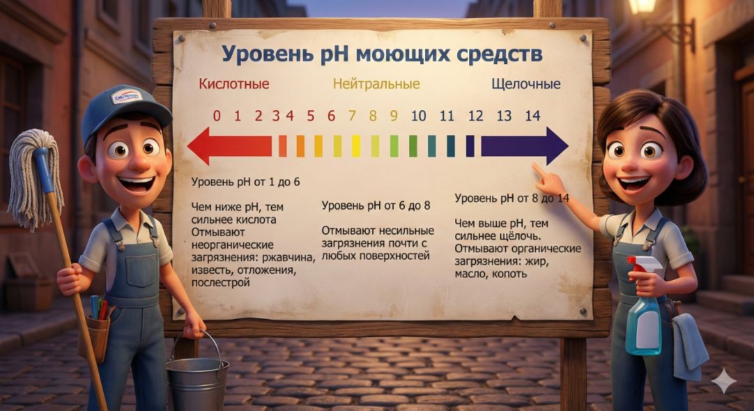 ИТАК, в клининге мы применяем кислотные и щелочные растворы разной концентрации и с добавлением особых веществ.