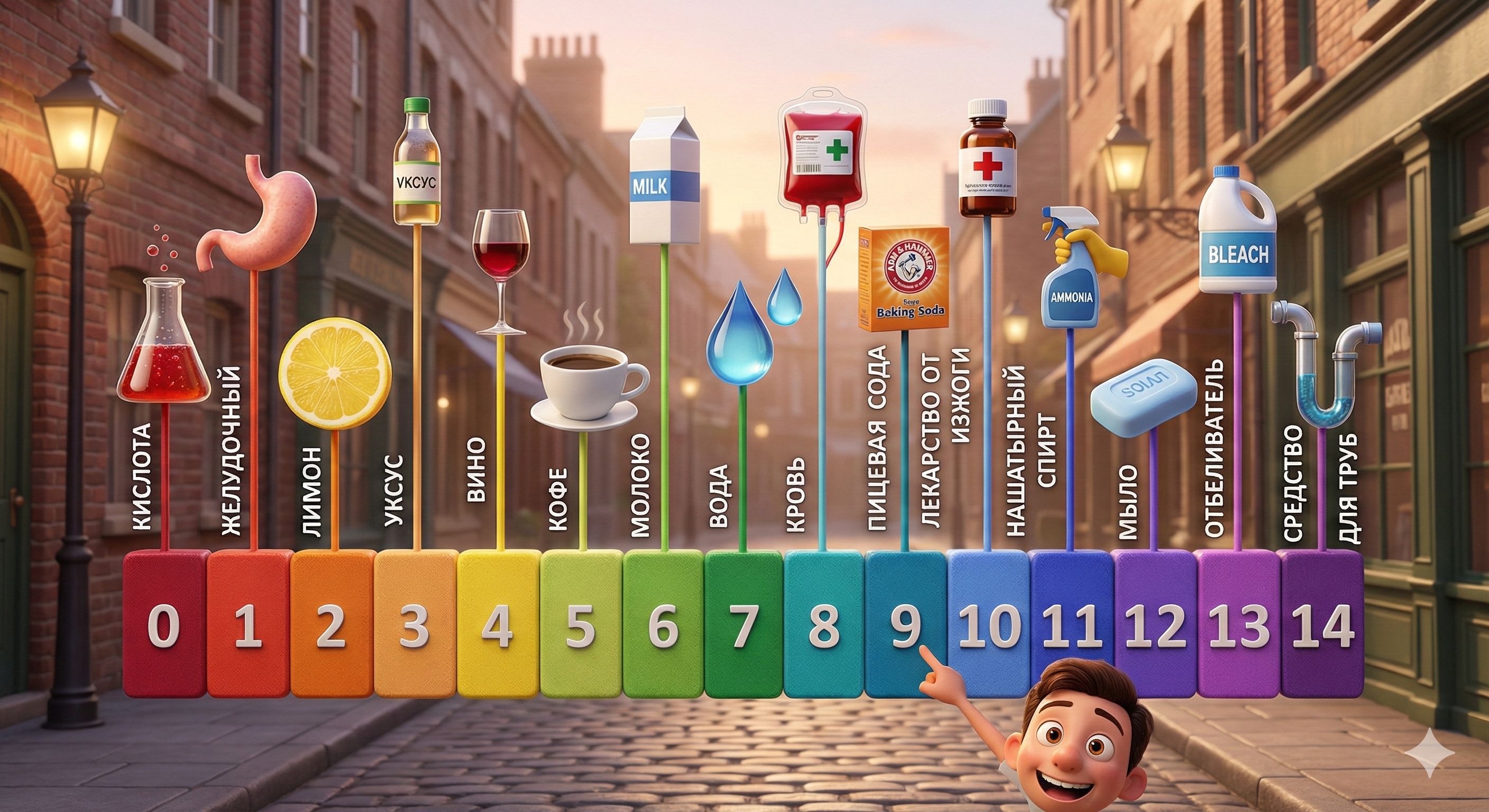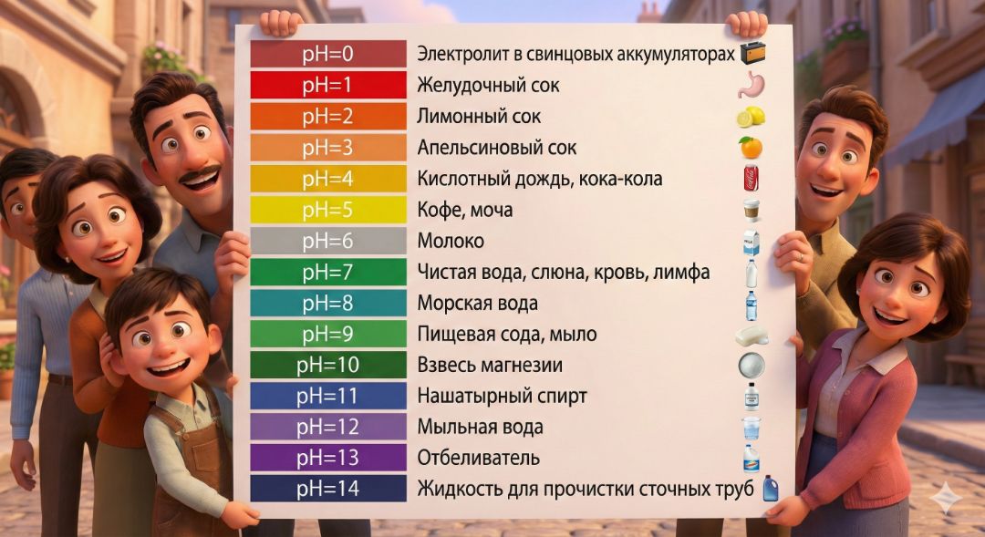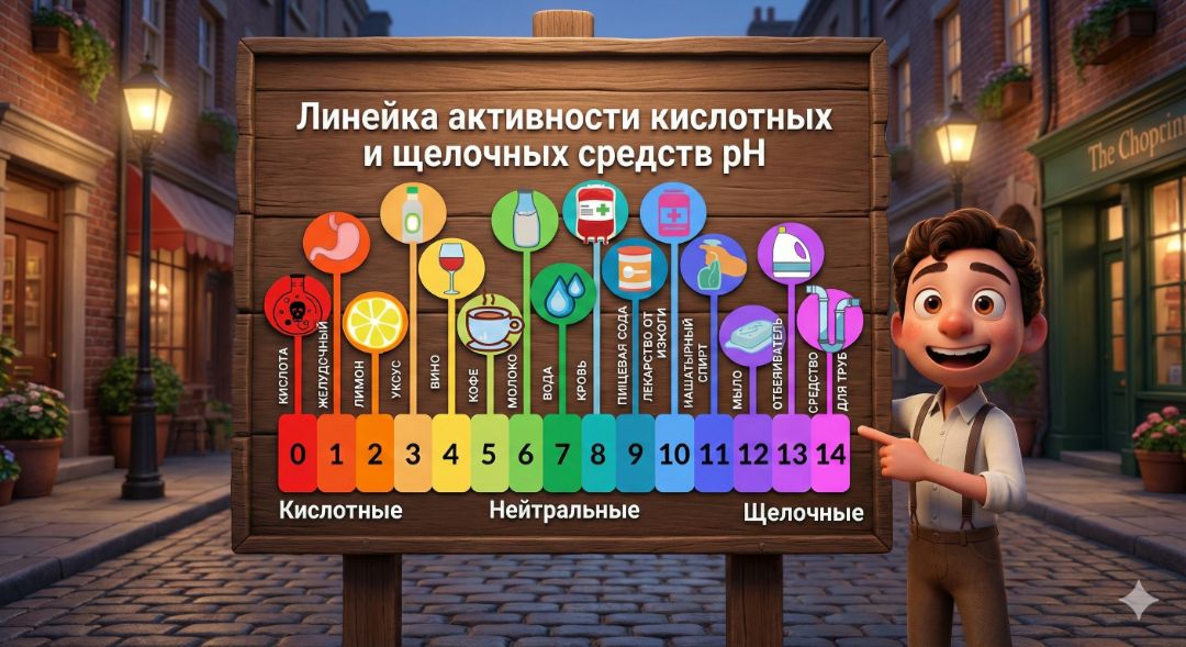 Возможно с помощью такой картинки, таких примеров вам будет легче запомнить линейку активности кислотных и щелочных средств PH