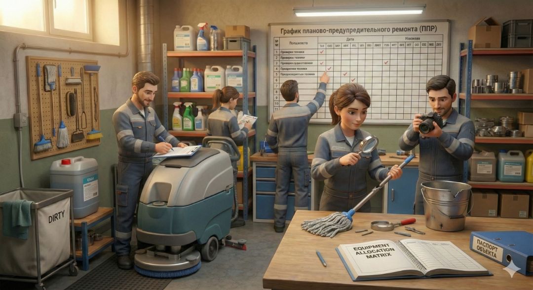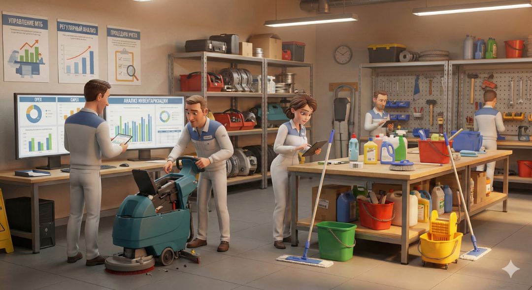 В современной индустрии фасилити-менеджмента и профессионального клининга эффективность управления материально-технической базой (МТБ) является вторым по значимости фактором рентабельности бизнеса после управления фондом оплаты труда. Специфика клинингового бизнеса характеризуется высокой дисперсией активов: оборудование и инвентарь распределены по десяткам и сотням удаленных объектов, находятся в постоянном движении между складами и мобильными бригадами, и подвергаются интенсивному эксплуатационному износу.
