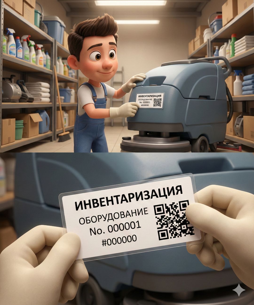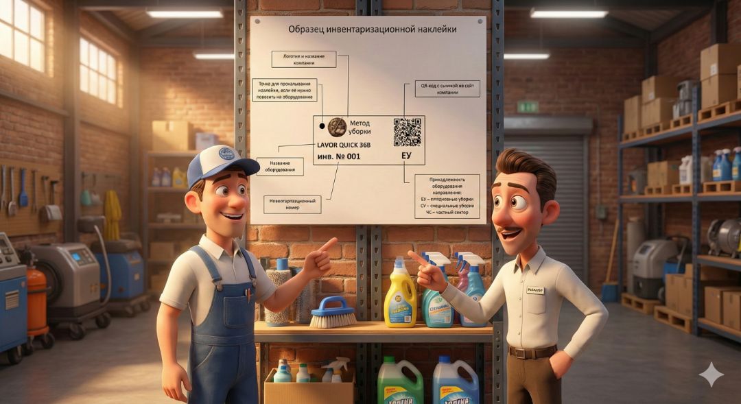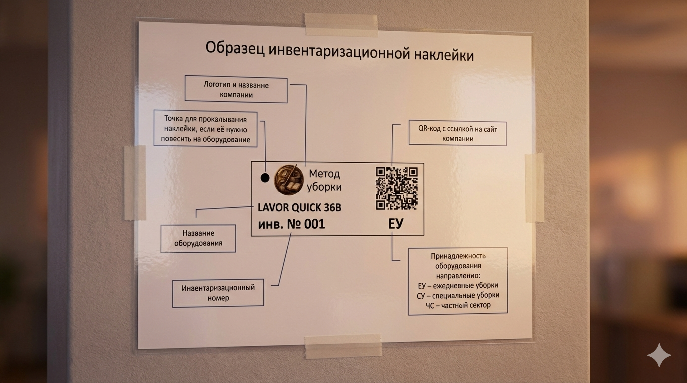 Пример инвентаризационного клейма на оборудование клининга