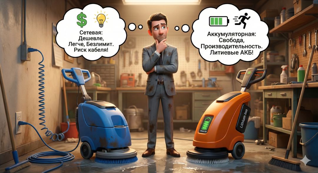 Аккумуляторные: Мобильны и безопасны для мест с высокой проходимостью (нет риска споткнуться о кабель), но требуют подзарядки.